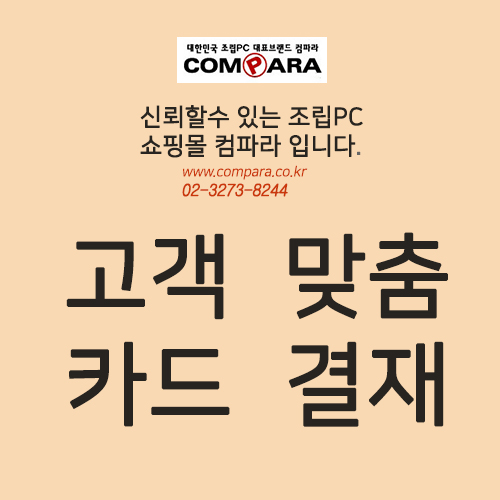 고객주문안내 컴파라 쇼핑몰의 판매 금액은 현금/카드 동일 금액으로 판매합니다. 쇼핑몰에 게시된 가격 이외의 별도 카드 수수료는 없습니다.