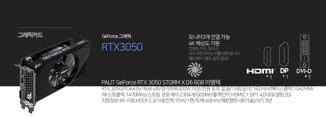 AMD 라이젠5 라파엘 7500F / (16GB) 삼성전자 DDR5 (8x2) / MSI B650M-P / Transcend NVMe 512GB / CD롬 없음 / darkFlash DK200 미들타워 / PALIT RTX 3050 6GB / 7.1채널 사운드 / Gigabit LAN / JONSBO CR-1000 EVO / 윈도우 별매 / 잘만 600W / 사은품 마우스 장패드