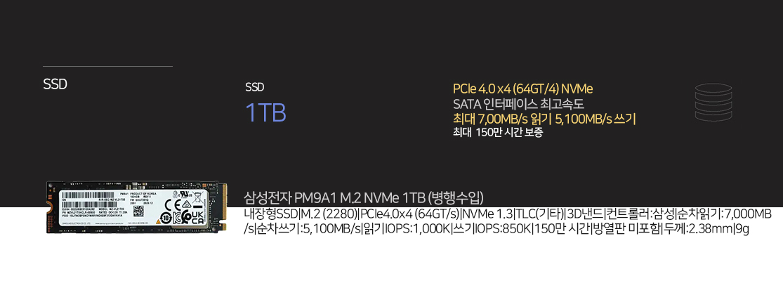 단, 단품 구입 후 7일 이내 초기 불량에 대한 교환은 컴파라에서 비용을 부담하여 교환 서비스 됩니다.(단품에 대한 출장 서비스는 지원하지 않습니다.)