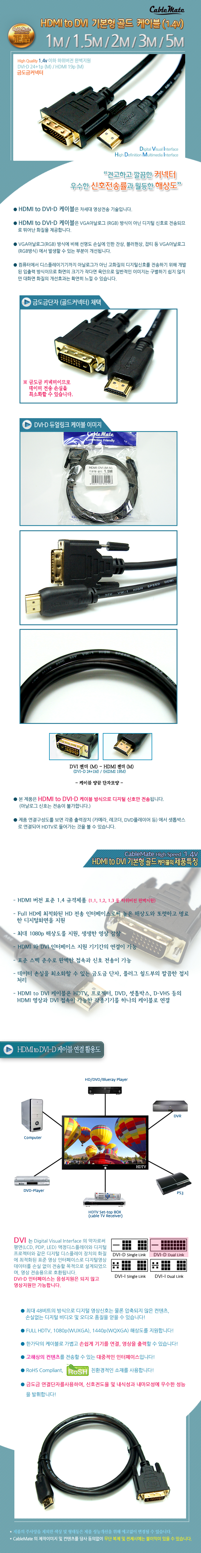 CableMate 케이블메이트 HDMI to DVI 기본형 골드 케이블 [1.4v] 1.5M
