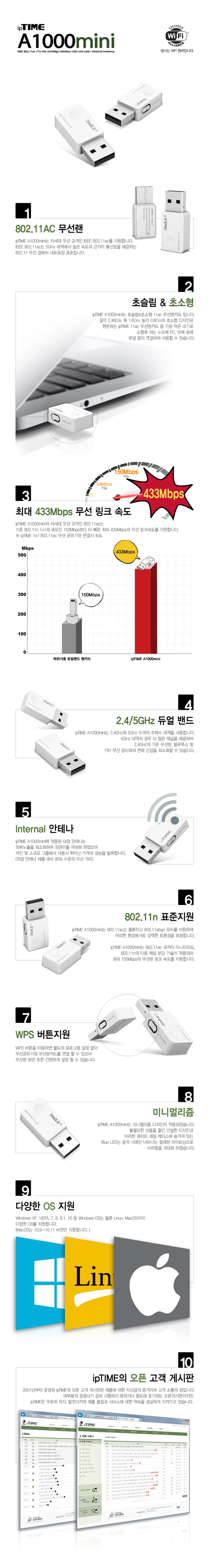 EFM ipTIME A1000mini (무선랜카드/USB/433Mbps)