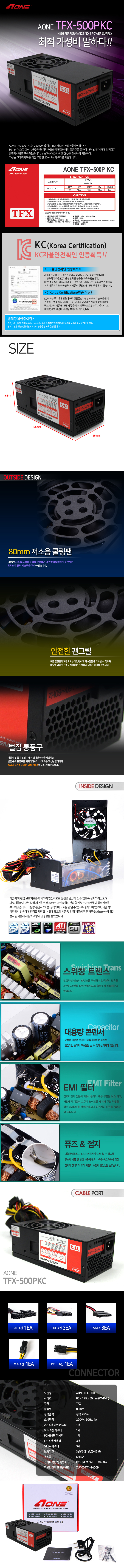 500W / TFX / 80mm팬 / 저소음 / 20+4pin / SATA / EMI / 오토팬컨트롤 / 과전압,과전류방지회로
