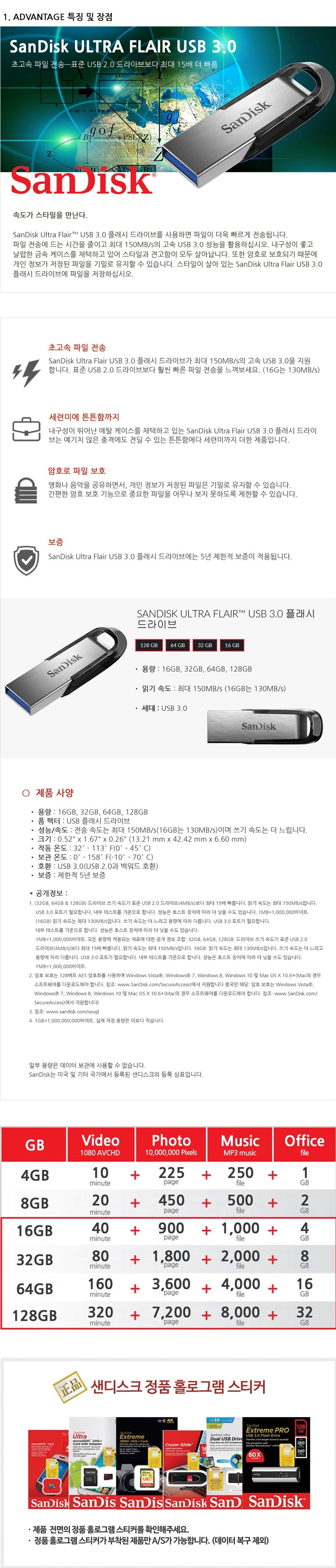 SanDisk USB, 울트라 플레어 (Ultra Flair), Z73 [32GB/메탈실버]