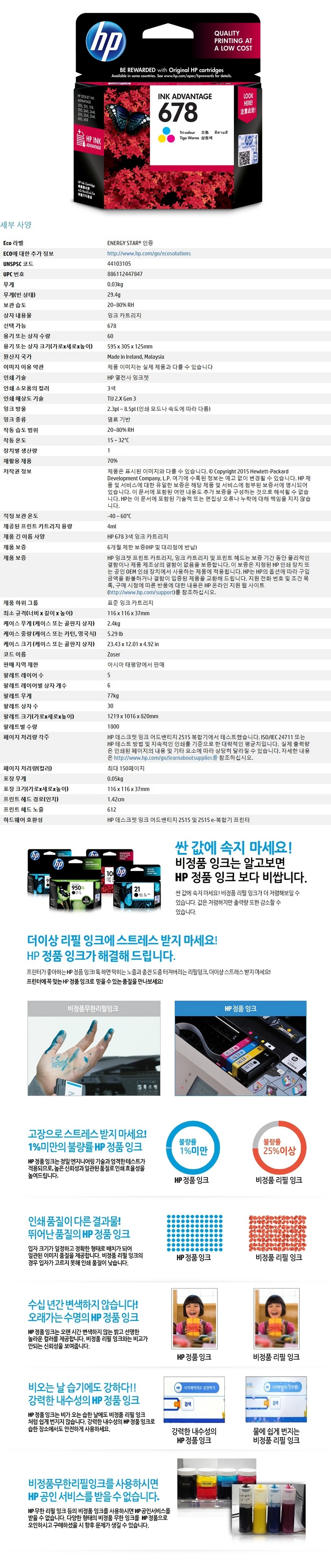 HP No.678 CZ108AA (정품잉크/컬러/150매/표준용량)