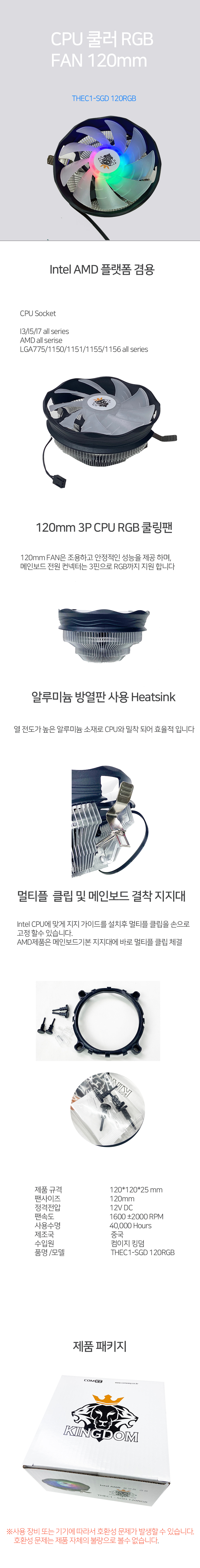 컴이지 킹덤 SGD-120RGB (CPU쿨러) 인텔 구형 CPU지원
