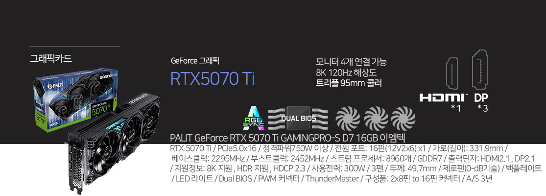 인텔 코어15세대 Ultra 7 265K / (32GB) 삼성전자 DDR5 (16x2) / MSI PRO Z890-A WIFI / SK hynix Platinum NVMe 1TB / CD롬 없음 / darkFlash DLX21 RGB MESH / PALIT RTX 5070 Ti 16GB / 7.1채널 사운드 / 5Gigabit LAN / darkFlash 수냉쿨러 DN-360D ARGB (블랙) / 윈도우 별매 / 마이크로닉스 900W / 사은품 마우스 장패드