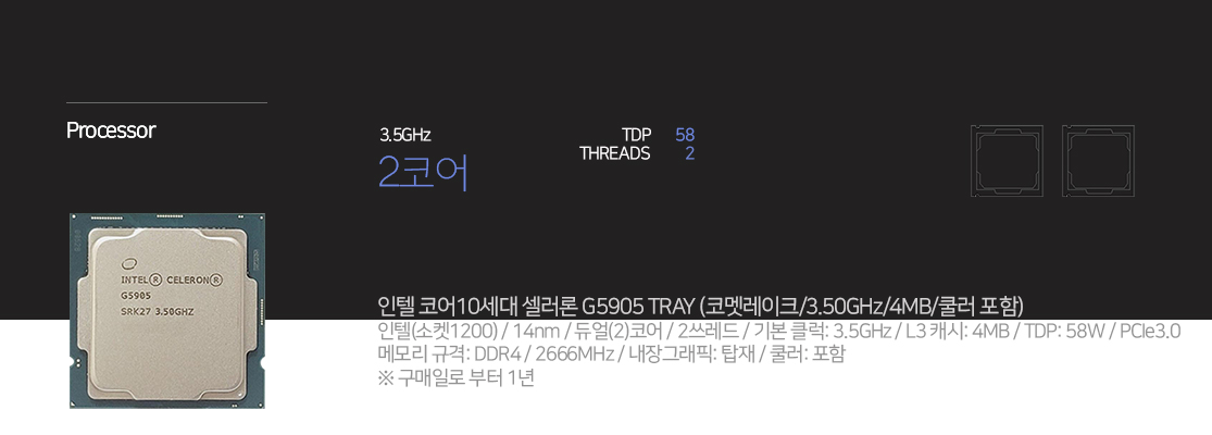 컴파라 사무용 인텔 코어10세대 셀러론 G5905/8GB/256GB/인텔 UHD 610 (H510)